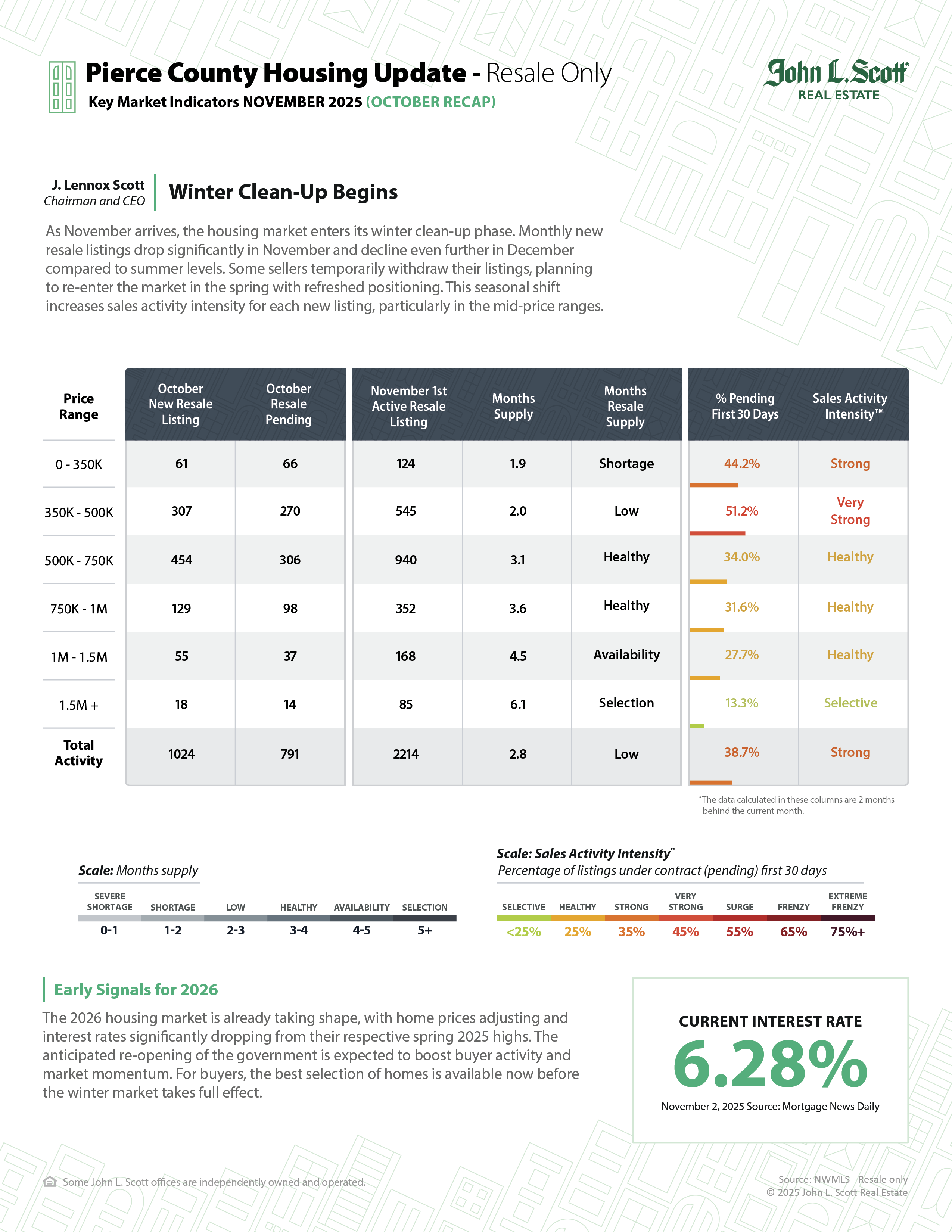The 2026 housing market is already taking shape, with home prices adjusting and interest rates significantly dropping from their respective spring 2025 highs. The anticipated re-opening of the government is expected to boost buyer activity and market momentum. For buyers, the best selection of homes is available now before the winter market takes full effect.